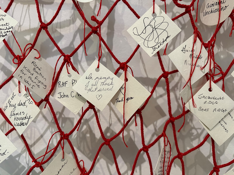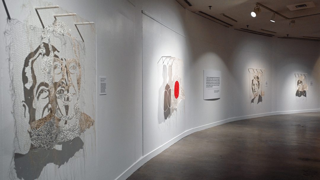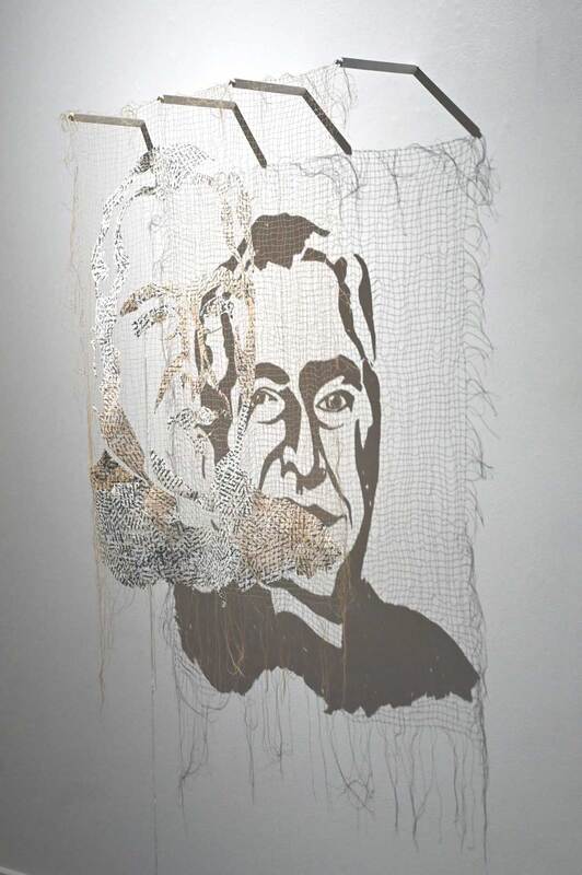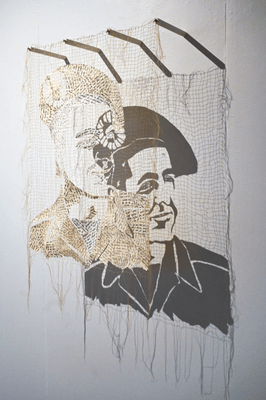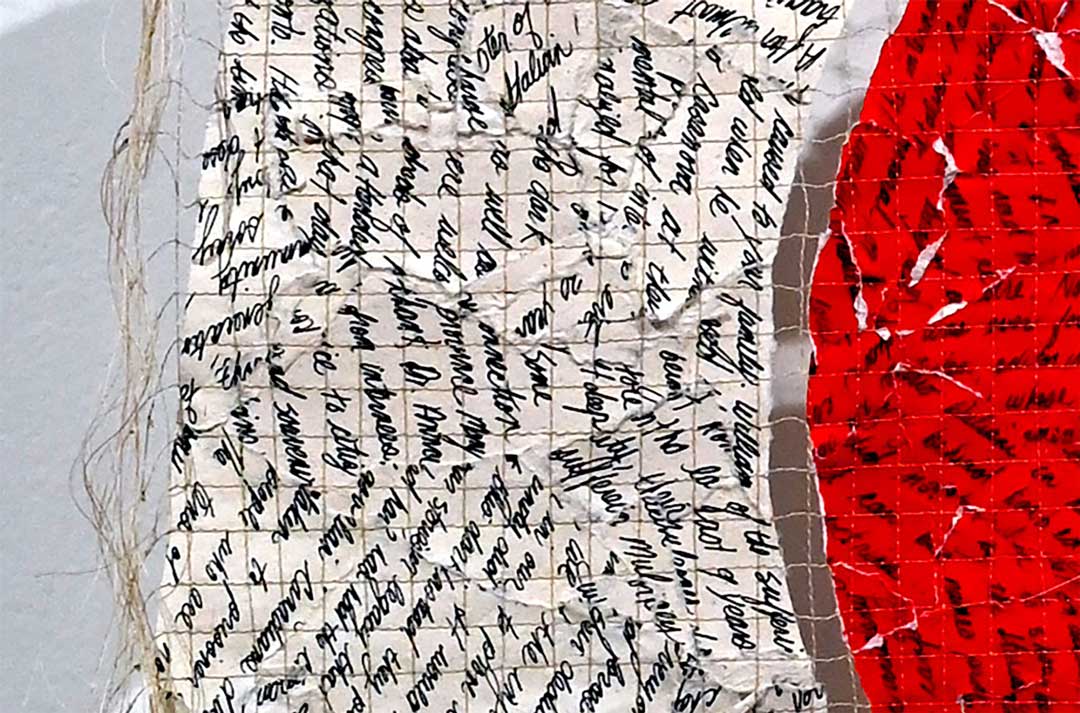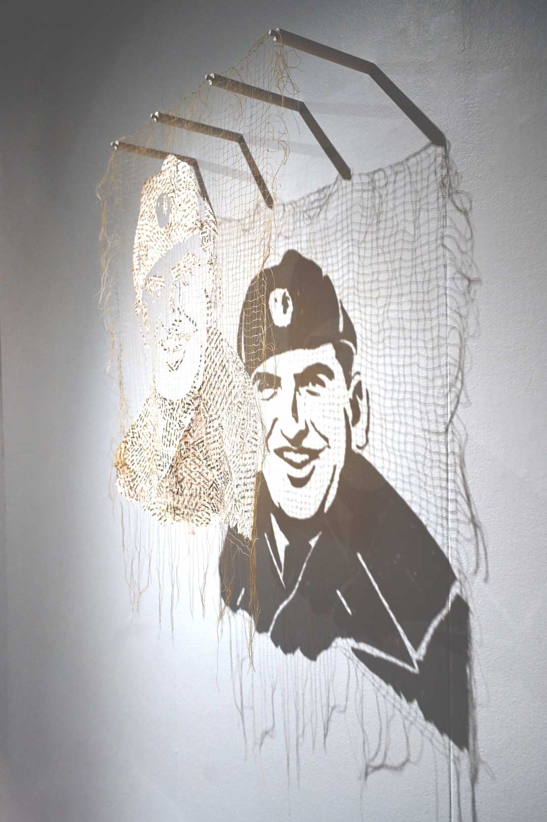 To build this series, I transcribed the letters my grandmother wrote on paper made by my aunt. (she gave me her stash of handmade paper shortly before she died). After transcribing the letters, I tore/cut them and stitched them together to create portraits of my grandparents, my five uncles and the red target that was stitched to the back of each internee’s uniform. When light is cast upon these delicate, monochromatic tapesties, a detailed shadow appears like a ghost from the past. This process of making, allows me to go back to that time, empathize with my family, forgive, and perhaps let go of any lingering trauma.