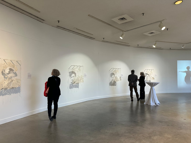 These stitched paper portraits shed light on the WWII internment of the Reverend Libero Sauro, my Italian Canadian grandfather. Like thousands of Italian Canadians, he was believed to be a fascist sympathsizer by the government of Canada and was taken from his family and held at Camp Petawawa, Ontario for four months. Unlike others, his stay was short due to the numerous letters my grandmother wrote advocating for his release. Ironically, five of his nine children were serving in the Canadian Armed Forces. It is a time in our Canadian history that is largely forgotten but could easily happen again to another targeted immigrant community.